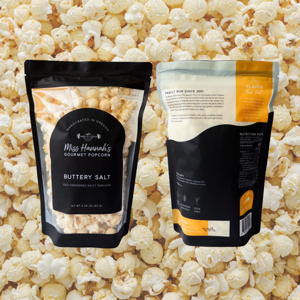 - Buttery Salt: A light, fresh, crisp take on the old fashioned salty popcorn we all love. (12x8x4 in bag, 3.25 oz)