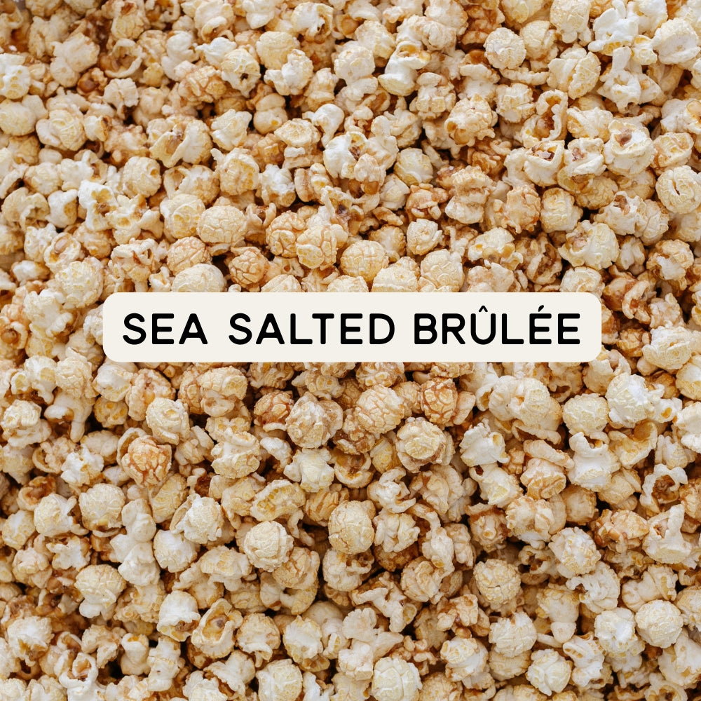 Sea Salted Brûlée: Non-GMO Mushroom Popcorn, Soybean Oil, Cane Sugar, Caramel Flavored Glaze (Sugar, Brown Sugar, Molasses, Artificial Flavors, Soy Lecithin, Salt, FD&C Yellow #5), Artificial Vanilla Flavor (Water, Propylene Glycol, less than 2% of: Ethyl Vanillin, Vanillin, Caramel Color), Salt. Contains: Soy
